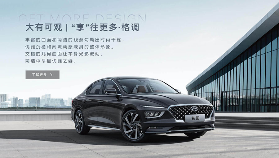 主要產(chǎn)品:第十代索納塔、第七代伊蘭特、菲斯塔、新一代ix35、新一代ix25、第四代勝達(dá)、第四代途勝、名圖、悅納等