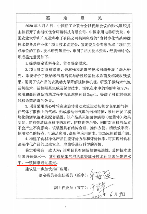 具有自主知識產(chǎn)權(quán)的“微納米氣泡活氧羥基”(UISH MOH+ ?)技術(shù)被中國輕工業(yè)聯(lián)合會鑒定為國際先進。