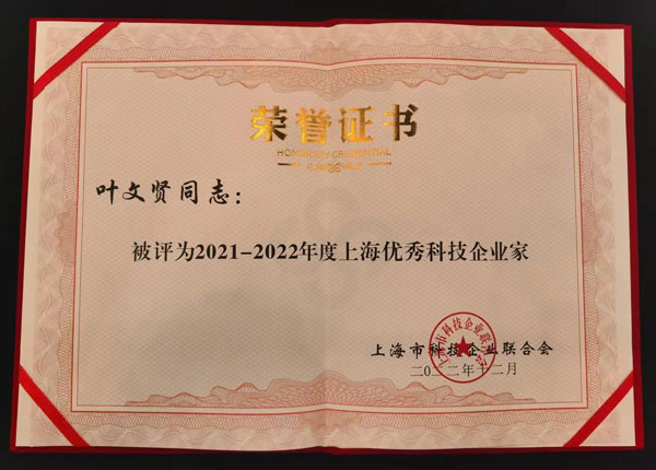 12月8日,上??沦惖滤辜用朗图瘓F(tuán)有限公司董事長葉文賢被授予“上海市優(yōu)秀科技企業(yè)家”稱號。這是在全國疫情防控新形勢下,對葉文賢同志直面經(jīng)濟(jì)大環(huán)境的挑戰(zhàn),堅持科技創(chuàng)新、堅持實業(yè)興企、堅持多品牌運作取得顯著成效的肯定。