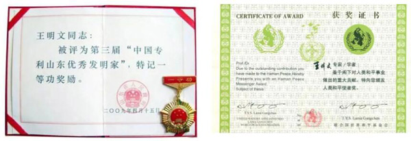 王明文先生2008年參加四川地震災區(qū)公益慈善活動,榮獲聯(lián)合國世界和平基金會授予人類和平使者榮譽。