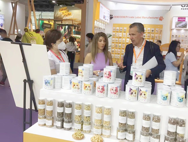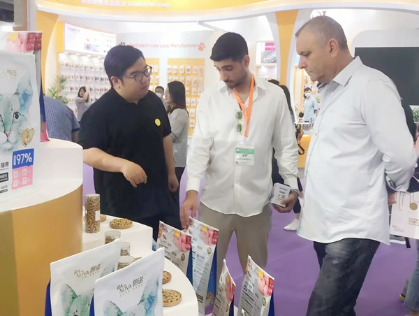展會現(xiàn)場,來賓絡繹不絕,吸引了不少來自國內(nèi)外的消費者、供應商,銷售人員不斷與客戶溝通、交流、探討。來自深圳的小張表示:“自家貓咪最喜歡朗諾棒棒糖,這次特意從深圳趕來參展。這次最驚喜的是凍干雪糕,沒想到小貓咪也有專屬雪糕,一定要買回去讓主子嘗嘗。”從香港趕來的米妮是摯味全價凍干貓糧的“粉絲”,這次特意來“面基”,找到朗諾展位的那一刻,就像多年好友重逢,倍感親切。