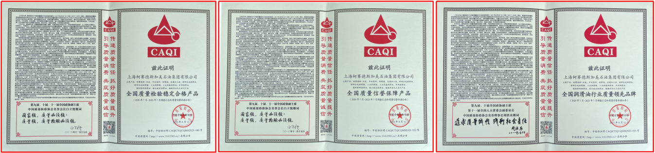 迎接即將到來(lái)的又一個(gè)全國(guó)質(zhì)量月——9月之際,8月11日,中國(guó)質(zhì)量協(xié)會(huì)向上海柯賽德斯加美石油集團(tuán)有限公司頒發(fā)三大榮譽(yù),即全國(guó)質(zhì)量檢驗(yàn)穩(wěn)定合格產(chǎn)品、全國(guó)質(zhì)量信譽(yù)保障產(chǎn)品、全國(guó)潤(rùn)滑油行業(yè)質(zhì)量領(lǐng)先品牌。這是在新的市場(chǎng)形勢(shì)下,柯賽德斯加美石油集團(tuán)深耕能源,堅(jiān)持質(zhì)量振興企業(yè)、科技助推發(fā)展、誠(chéng)信塑造品牌戰(zhàn)略的長(zhǎng)期努力結(jié)出的碩果。